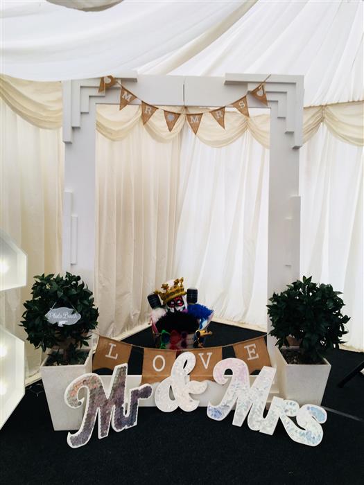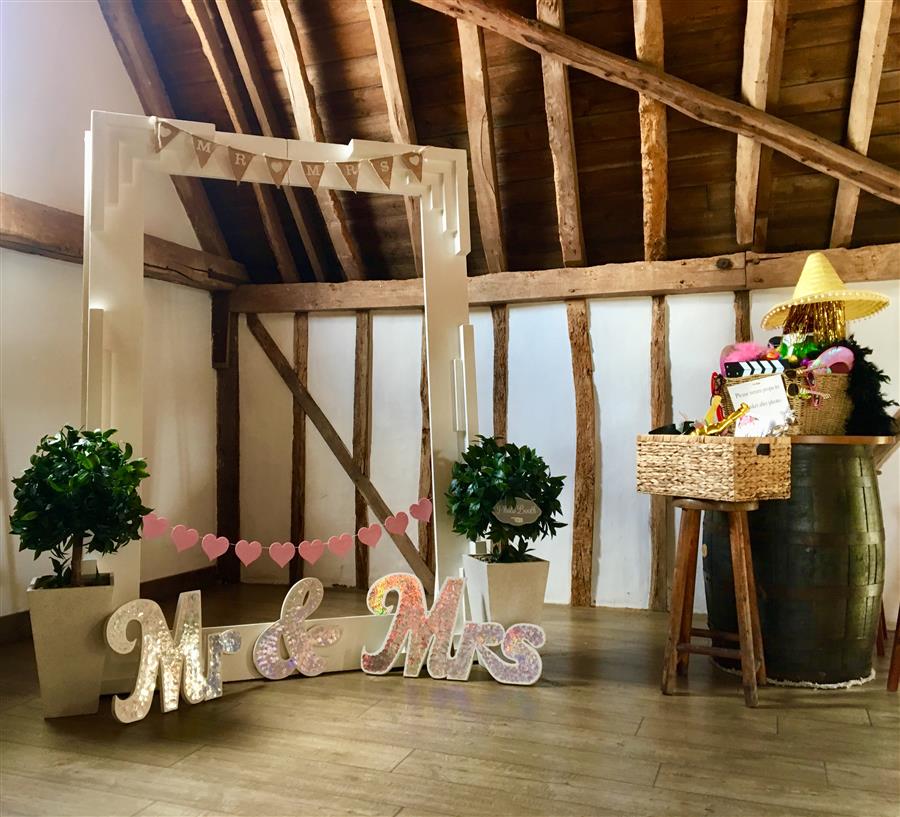 The booth comes with a sparkly Mr & Mrs prop sign for you both to hold, as well as speech bubble chalk boards so your guests can write their messages to you to keep safe in your record book?